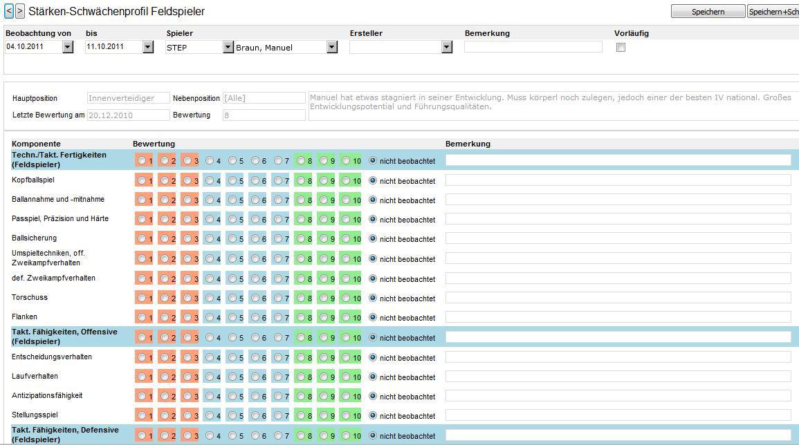 Das Stärken-/Schwächenprofil findet unterschiedliche Verwendung: Im Bereich Scouting, zur Dokumentation der Spieler-/Talententwicklung sowie bei den obligatorischen Spielergesprächen unter anderem auch, um eine Spieler-Selbsteinschätzung zu dokumentieren.